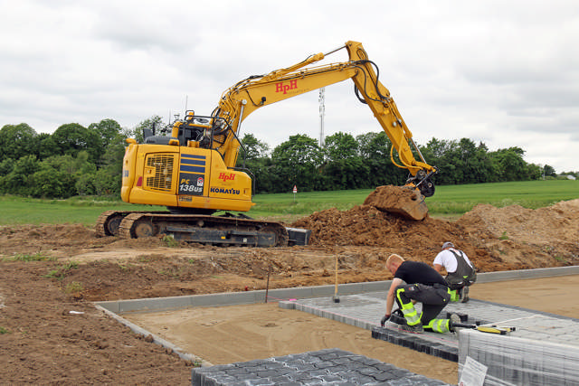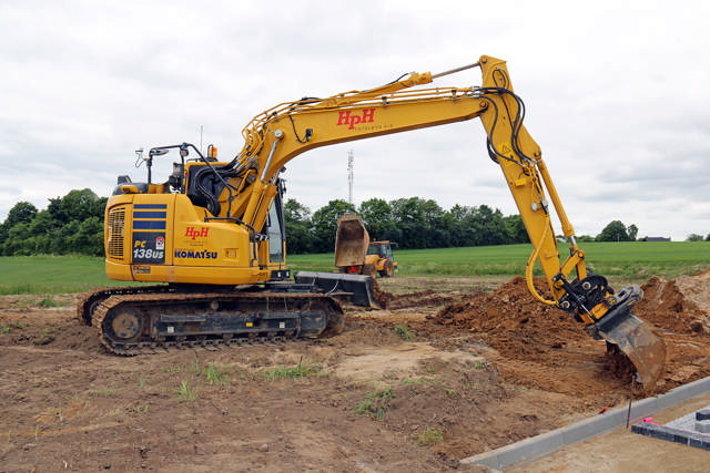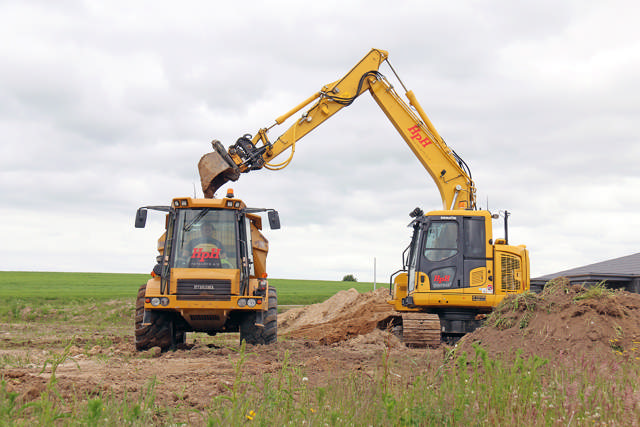 ”Netop kloakprojekter og udgravning på mindre pladser udgør en væsentlig del af arbejdsopgaverne for Komatsu-graveren. Foruden til at komme i jorden og arbejde med kloakker, tager den også mangen en tørn med afretning, og så er det virkelig en fordel, at maskinen kommer nemt rundt”, fortæller afdelingschef Morten Henningsen hos HPH Totalbyg.