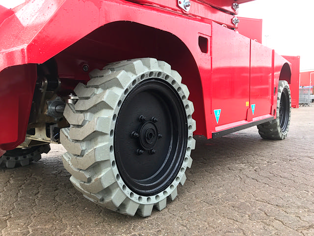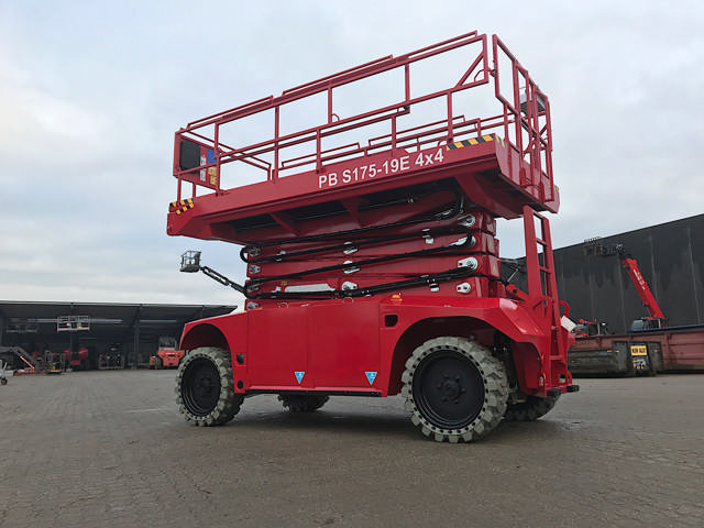Modellen hedder PB 175-19E 4x4 og er drevet udelukkende af et batteri på 625 Ah. Med en platformshøjde på 15,8 meter, en arbejdshøjde på 17,8 meter og en kapacitet på 500 kg er den en værdifuld maskine, når man skal i højden og arbejde uden emission fra en udstødning.