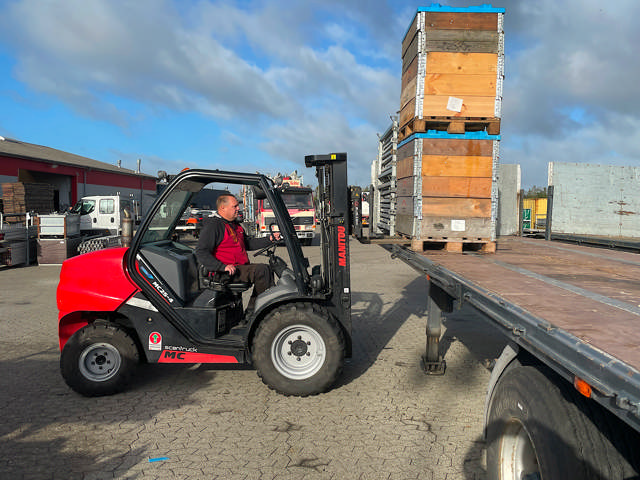 - Vi kan tage den med ud til kunderne, og de fungerer bare perfekt til at løse opgaverne. Vores primære krav er, at maskinerne skal kunne køre over det hele. Også når underlaget er blødt. Og så skal de kunne læsse lastbilerne i den nødvendige højde. Vi har set på andre mærker, men har aldrig været fristet til at købe dem. Manitou er det, som vi synes fungerer bedst, så vi har aldrig købt andet. Og så er vi glade for Freddy hos Scantruck, som vi har handlet med gennem mange år, siger Keld Sørensen.