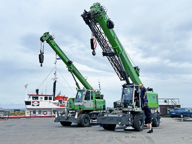 Værftets mobilkraner træder i funktion, når der skal udføres løfteoperationer. Det skal der ofte, og Sennebogen-kranen har en vigtig rolle. Ikke mindst fordi, værftets mandskab har stor tillid til, at den altid er i topform.