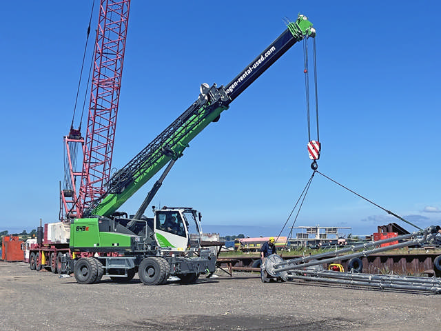 Det er distriktschef Otto Madsen hos Scantruck A/S, der som dansk Sennebogen-importør og -forhandler, har leveret den mobile teleskopkran til Søby Værft. Sennebogen 643E-M vejer selv 27 tons, men løfter altså op til 40 tons. Den er udstyret med en Cummins QSB 4,5 motor med 175 hestekræfter.