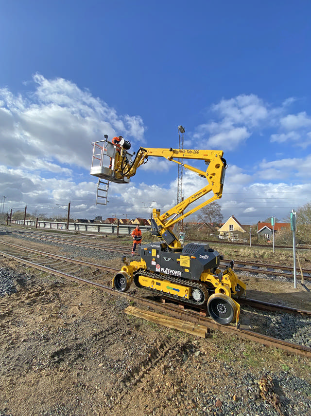 ”Vi kører rundt og laver køreledninger, brorenoveringer, signaler og alt andet i højden. Vi så Platform Basket-liftene på en international messe for jernbanetransport i Berlin, og efterfølgende kontaktede vi den danske importør, Scantruck. Nu er det så blevet til to lifte. Og dermed mulighed for at opkalde begge to efter vores hunde”, siger Marc Enevold de Carvalho Fabricius.