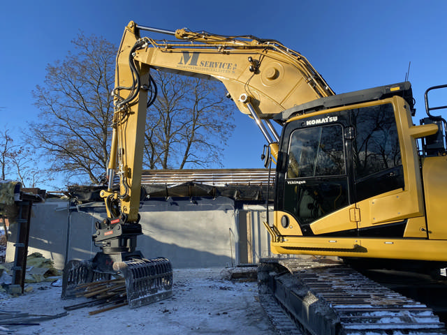 - Komatsu HB365LC-3 Hybrid vejer 37,16 tons og har en gravedybde på 7,38 meter og en rækkevidde på 11,1 meter, men M-Service-maskinen kan ved hjælp af den specialbyggede bom og en oil quick forlængerarm, som Mads Linnet selv har konstrueret, nå 20 meter i højden (men alene den ombyggede bom giver tre meter ekstra)