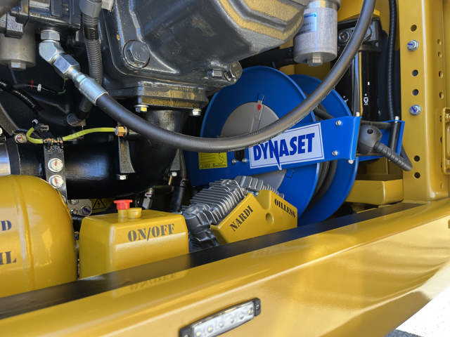 Komatsu hybrid gravemaskinen har også en Dynaset højtryksrenser drevet af hydraulikken, så han kan vaske maskinen ren på stedet og samtidig også forstøve omkring nedbrydningsudstyret. Vandtanken er specialbygget og placeret mellem kontravægt og ramme.