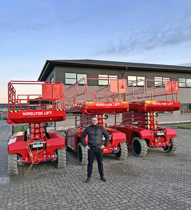 ”Jeg forestiller mig, at det bliver rent el fremover. Vores kunder har mere og mere fokus på el-maskiner til at sikre CO2-neutrale byggepladser. Det skal vi naturligvis efterkomme, og derfor er det fint, at PB Platforms producerer hele det store program i både diesel- og el-udgaver”, siger Nordjysk Lifts administrerende direktør, Jacob Sørensen.