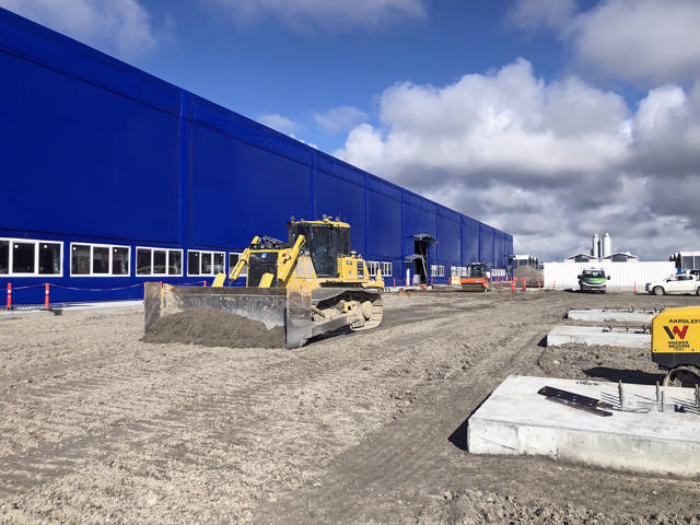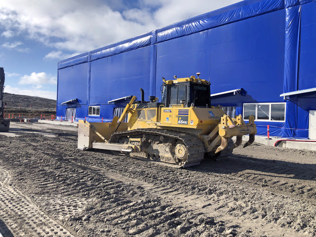 I øjeblikket flytter de to Komatsu-dozere jord til etableringen af vejstrukturen ved flydeterminalerne udenfor elementfabrikken, der står for produktionen af de kæmpestore tunnelelementer. Her arbejder de i meget kalkfyldt jord, som er nem at genbrug til indbygning. Efterfølgende kommer det til at handle om landstrukturen, hvor vejen skal komme op fra selve tunnelen.