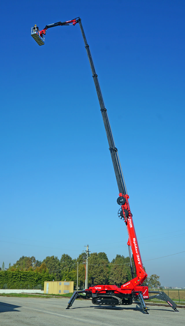 Scantruck A/S lukkede et hul i det store program i lifte, da firmaet i fjor sikrede sig dansk forhandling af italienske Platform Basket-bomlifte på bælter. Nu har Platform Basket selv lukket et hul i den ellers brede serie med en ny lift i den høje ende af sortimentet. Faktisk er den nye Spider 39T nu næstøverst i hierarkiet med arbejdshøjde på næsten 39 meter.