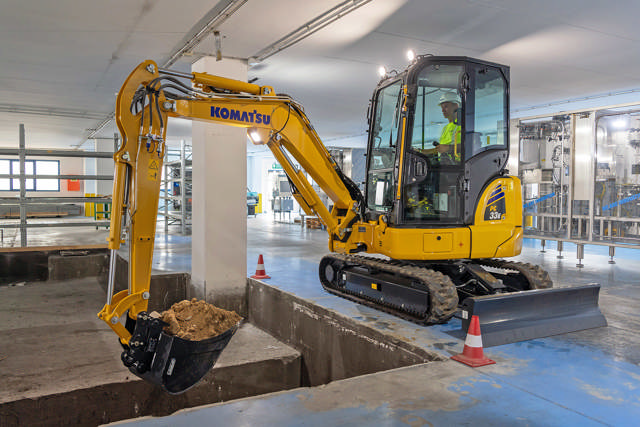 “Hvis alt går planmæssigt, har vi PC33E med på Agromek, hvor vi faktisk også har mulighed for at sælge den. Maskinen ligger i klassen mellem 3,5 og 4 tons og er udstyret med en motor på 17,4 kW og med en 35 kWh batteripakke. Den er Komatsus første el-minigraver”, siger markedschef Dennis Faurby.